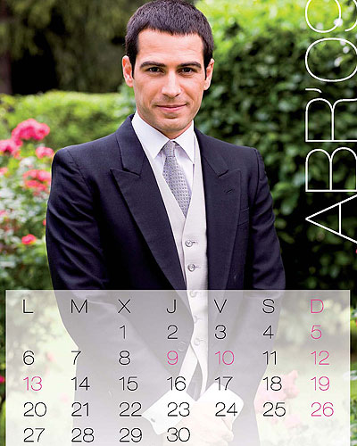 Podéis ver el calendario completo en http://www.telecinco.es/brillantenavidad/photogallery/9098/photo1.shtml y aquí os dejamos el mes en el que aparece Alejandro, que es Abril.