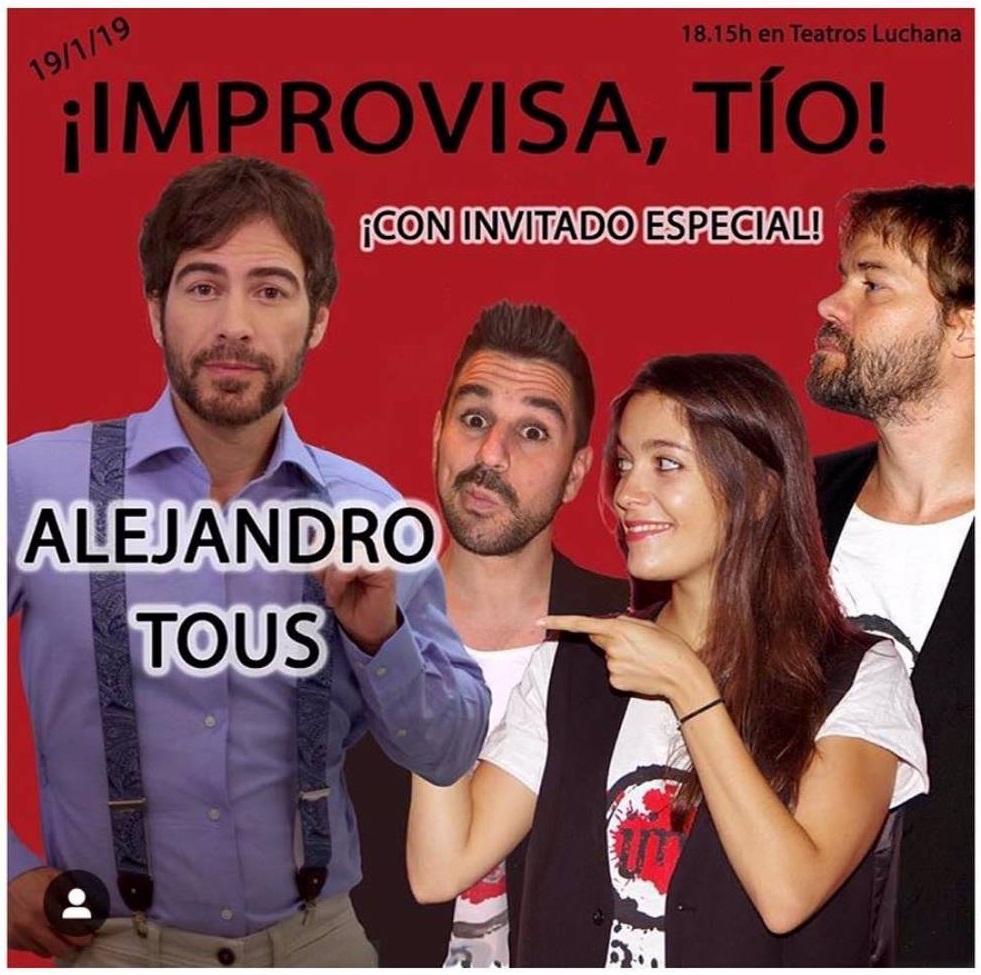 Este sábado, Alejandro Tous participa en "¡Improvisa, Tío!", un espectáculo de improvisación en @Teatros Luchana, en el los espectadores se convierten en alumnos, sus butacas en pupitres y los 4 actores en 4 maestros de la improvisación. Un espectáculo dónde el público decide lo que ocurre.